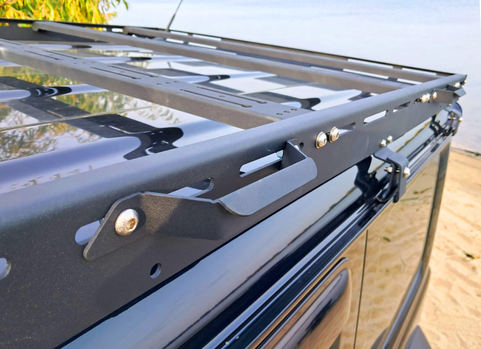 Багажник відрізняється стильним зовнішнім виглядом, який ідеально поєднується з дизайном автомобіля. Кольорові елементи можуть бути пофарбовані в будь-який колір за вашим бажанням, що дозволяє підкреслити індивідуальність і виділиться серед натовпу нудних автомобілів