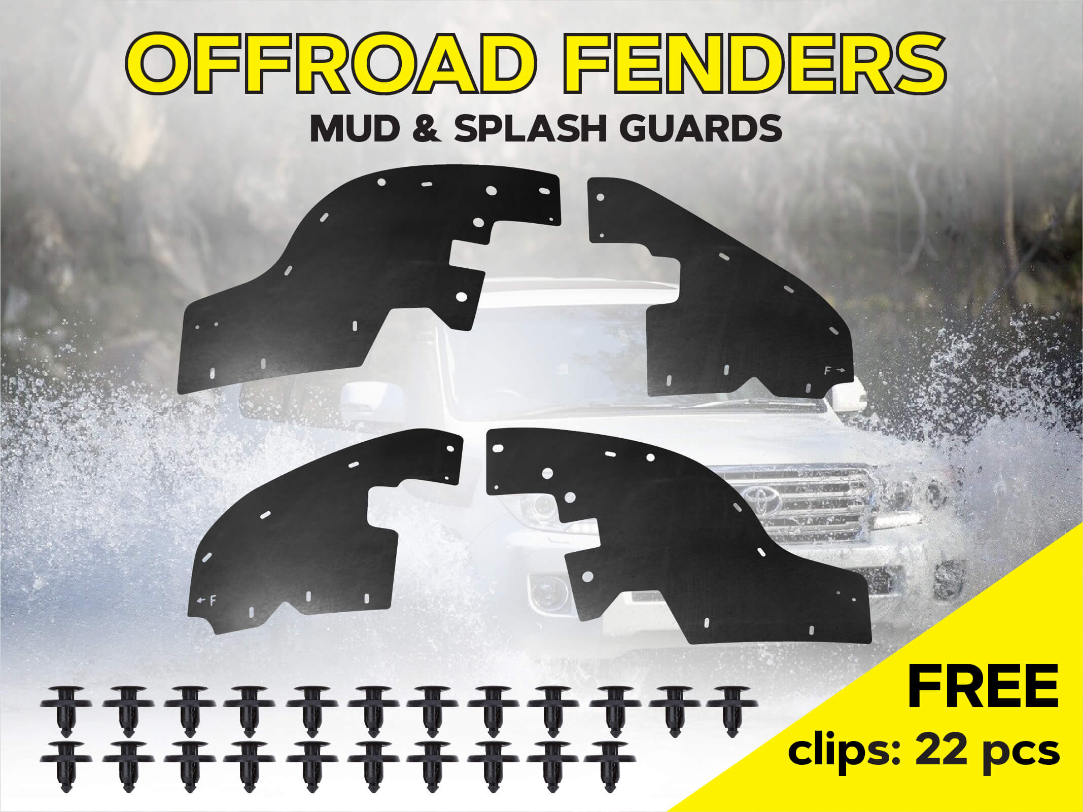 Склад комплекту: 4 посилених пильники для передніх колісних арок, монтажний набір кліпс, інструкція.
