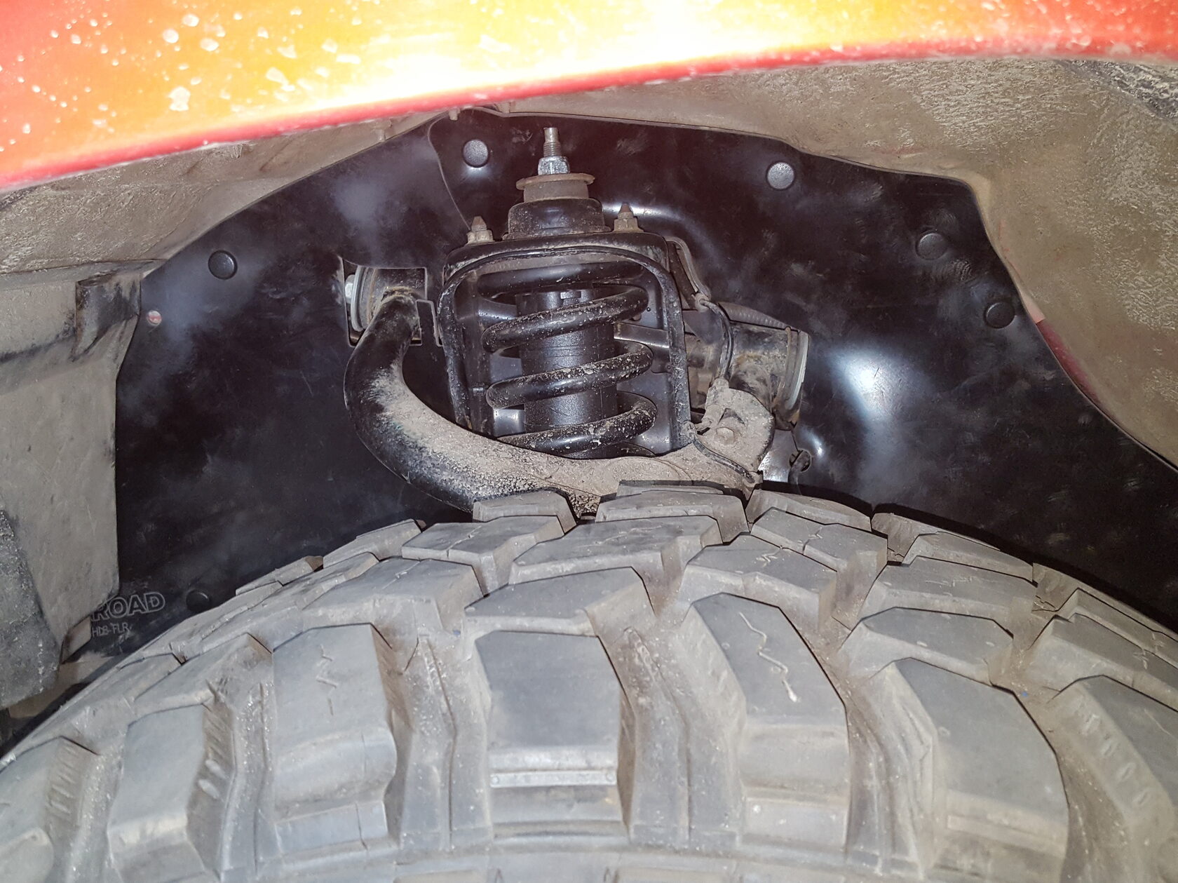 Повний комплект посиленого брудозахисту моторного відсіку для встановлення на передню вісь автомобіля. Площа посиленого брудозахисту значно більша за штатний, що дозволяє йому ефективно захищати не тільки моторний відсік, але й важливе електрообладнання, таке як генератор і стартер. Цей посилений брудозахист розроблений спеціально для експлуатації як у міських умовах, так і на найскладніших позашляхових трасах.