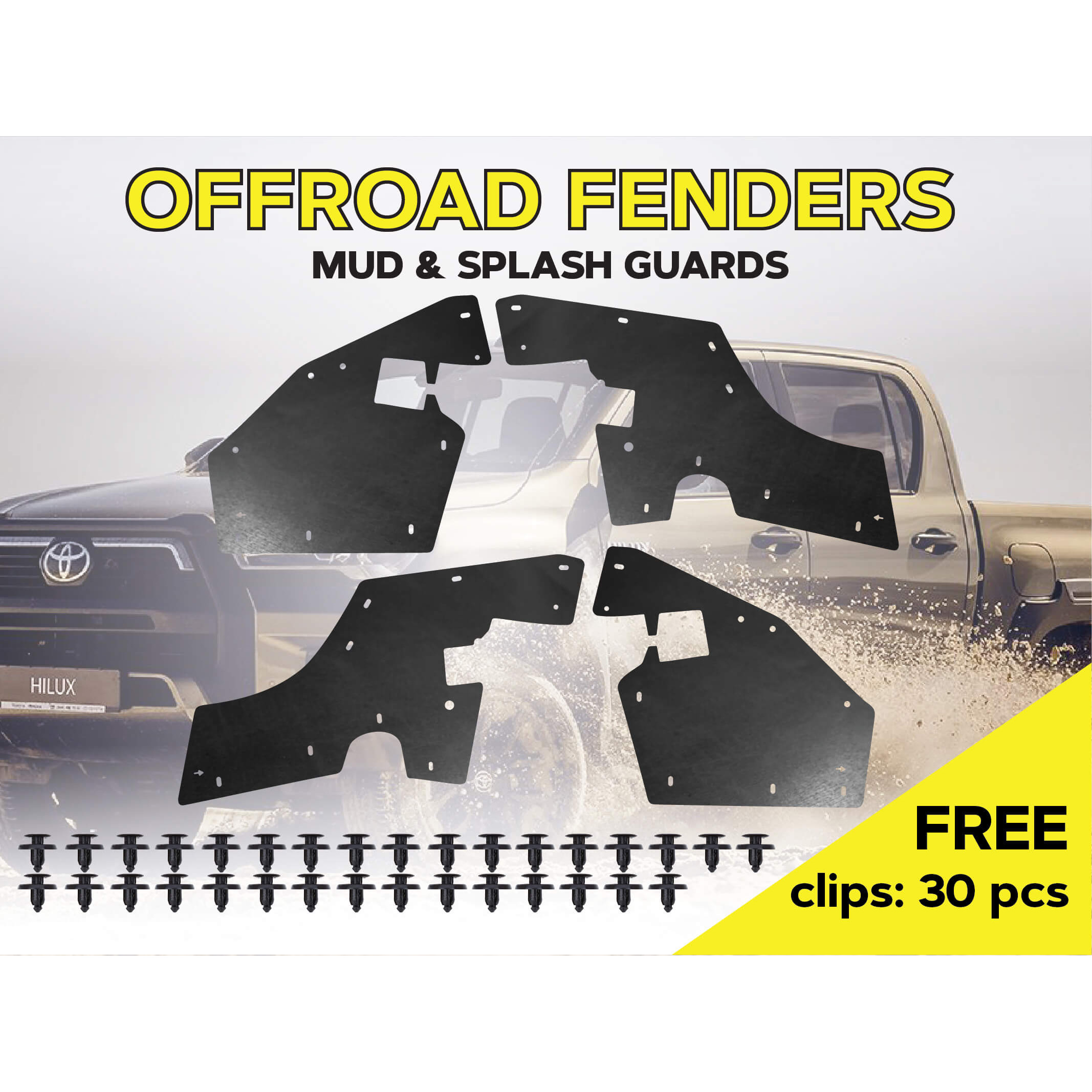 Склад комплекту: 4 посилених пильники для передніх колісних арок, монтажний набір кліпс, інструкція.