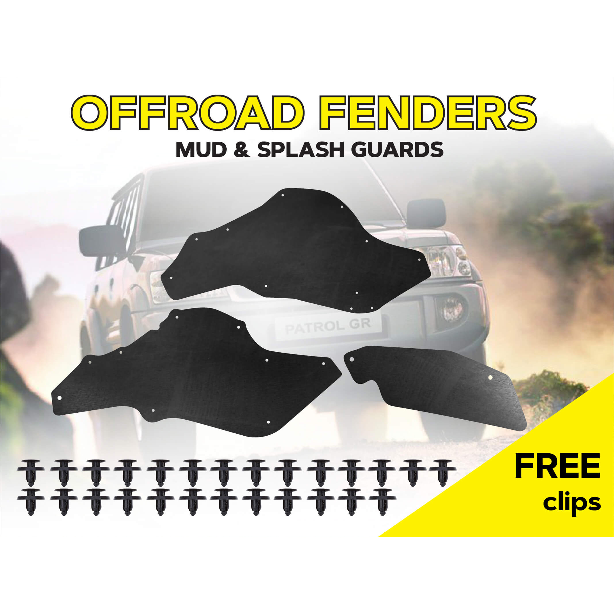 Повний комплект посиленого брудозахисту для встановлення на передню вісь автомобіля. Ефективно захищаэ не тільки моторний відсік, але й важливе електрообладнання від пилу, бруду, води, гілок, дрібних каменів та інших сторонніх елементів.