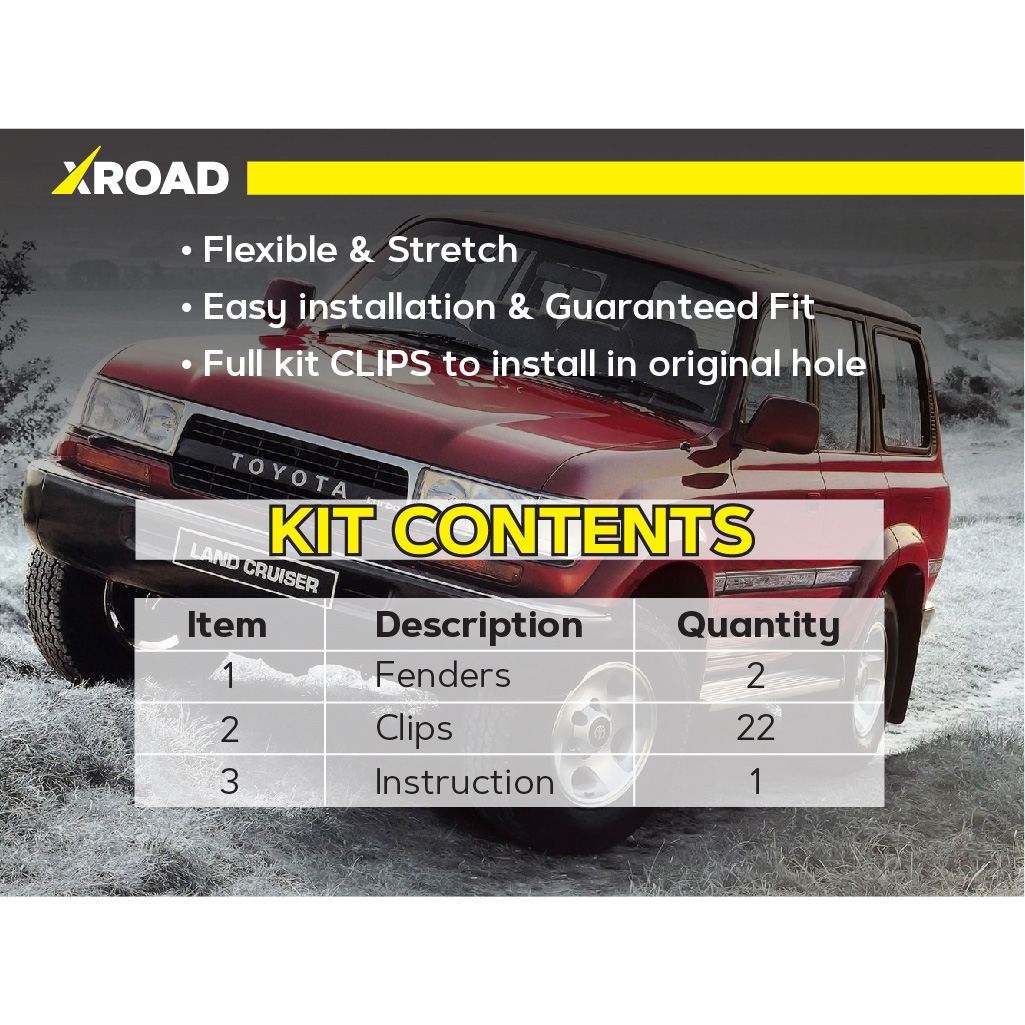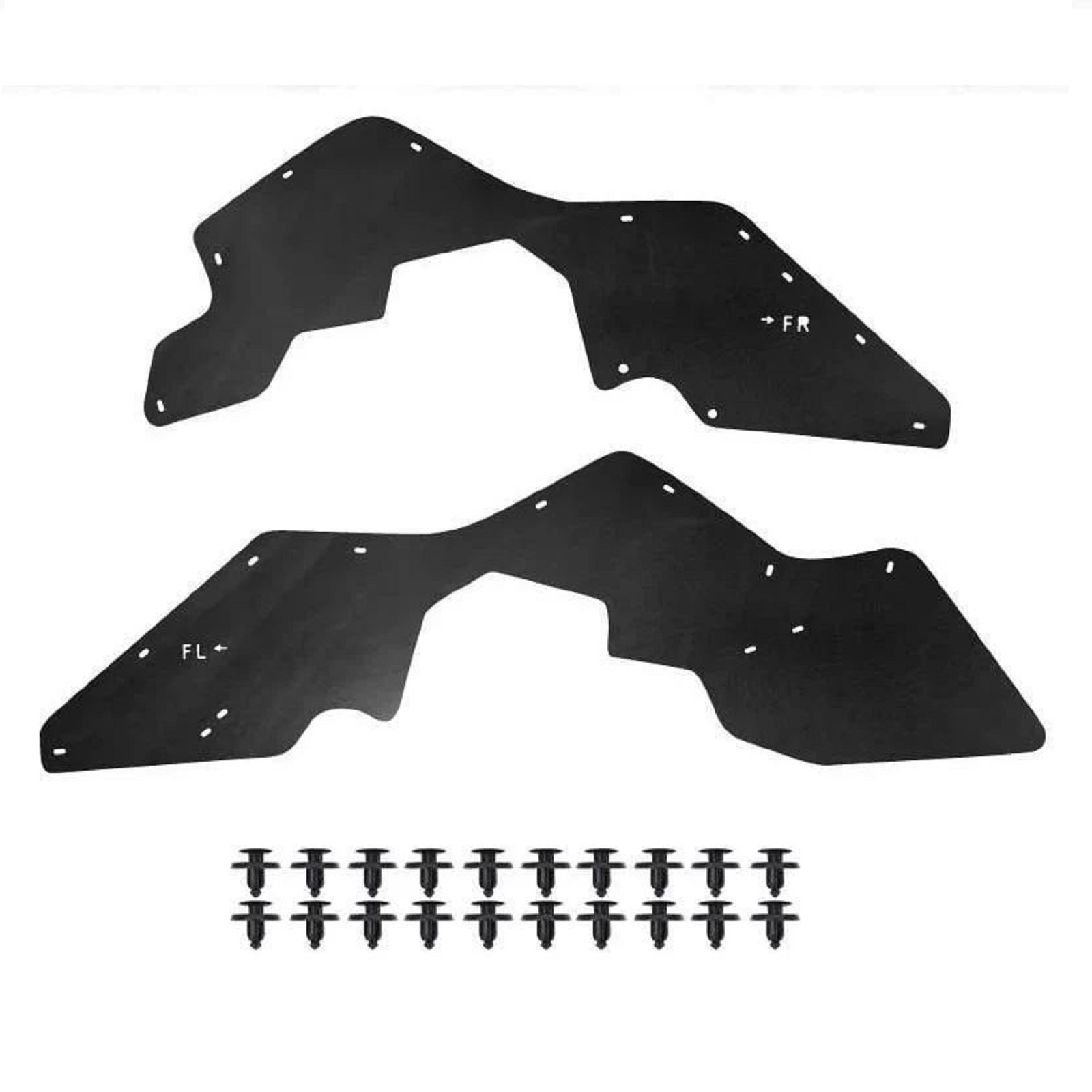 Склад комплекту: 2 посилених пильники для передніх колісних арок, монтажний набір кліпс, інструкція.
