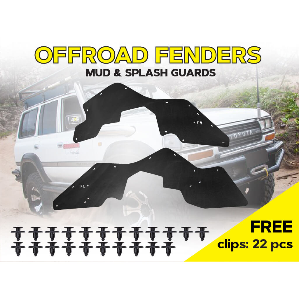 - Повний комплект посиленого брудозахисту для встановлення на передню вісь автомобіля.
