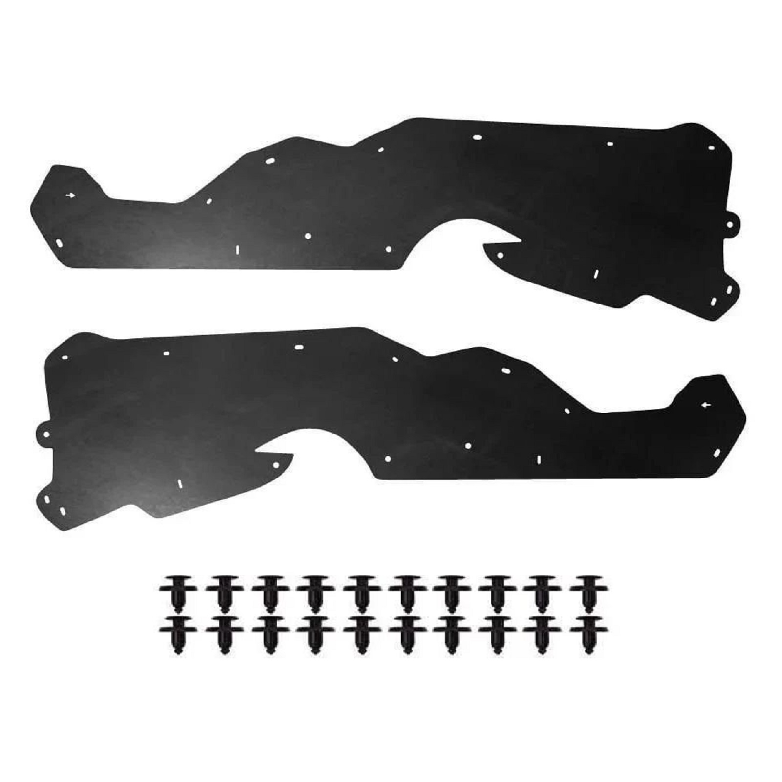 Повний комплект посиленого брудозахисту моторного відсіку для встановлення на передню вісь автомобіля. Площа посиленого брудозахисту значно більша за штатний, що дозволяє йому ефективно захищати не тільки моторний відсік, але й важливе електрообладнання, таке як генератор і стартер. Цей посилений брудозахист розроблений спеціально для експлуатації як у міських умовах, так і на найскладніших позашляхових трасах