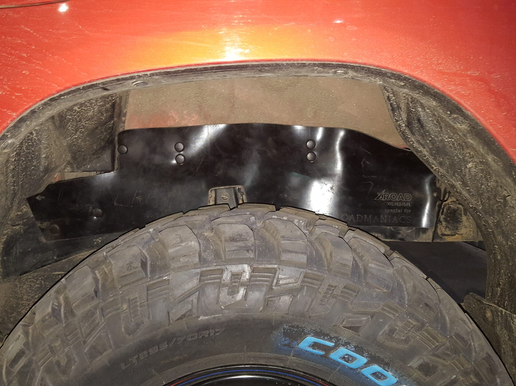 Повний комплект посиленого брудозахисту для встановлення на задню вісь автомобіля. Площа посиленого брудозахисту значно більша за штатний, що дозволяє йому ефективно захищати колісні арки між кузовом і рамою від пилу, бруду, гілок, дрібного каміння та інших сторонніх елементів. Це допомагає зберегти чистоту та цілісність ходової задньої вісі, уникнути корозії та зайвої ваги автомобіля. Цей посилений брудозахист розроблений спеціально для експлуатації як у міських умовах, так і на найскладніших позашляхових трасах.