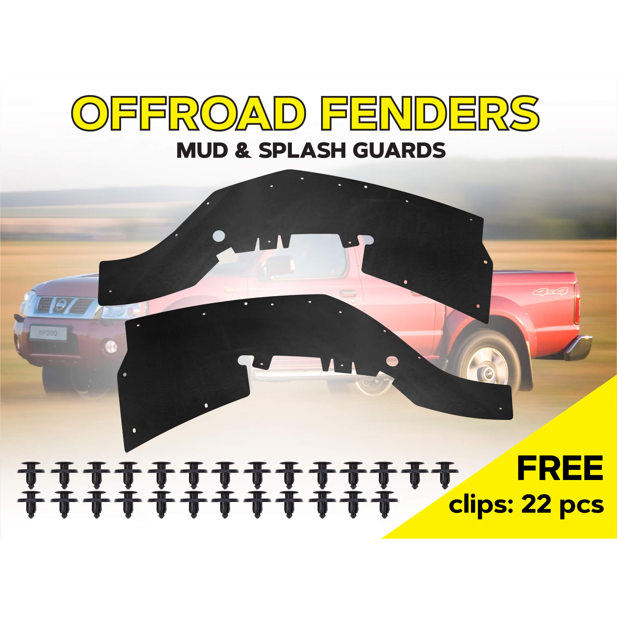 Склад комплекту: 2 посилених пильника для передніх колісних арок, монтажний набір кліпс, інструкція.