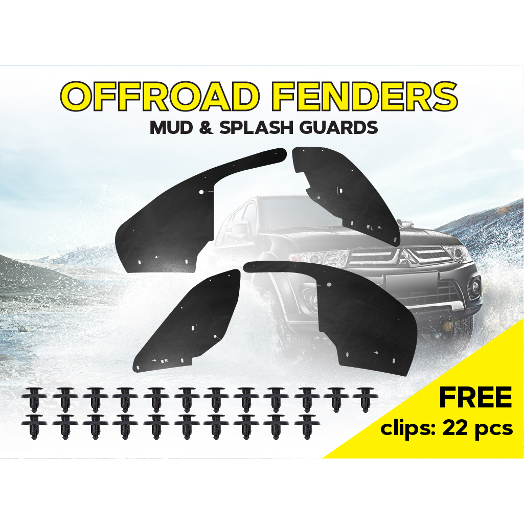 Склад комплекту: 4 посилених пильники для передніх колісних арок, монтажний набір кліпс, інструкція.
