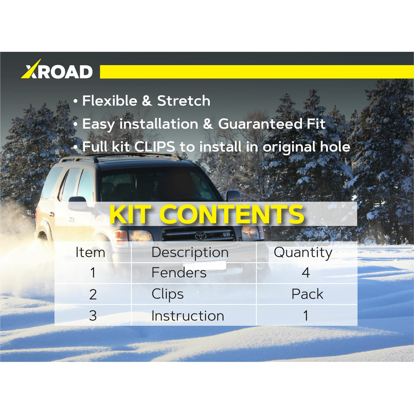 Склад комплекту: 4 посилених пильники для передніх колісних арок, монтажний набір кліпс , інструкція.