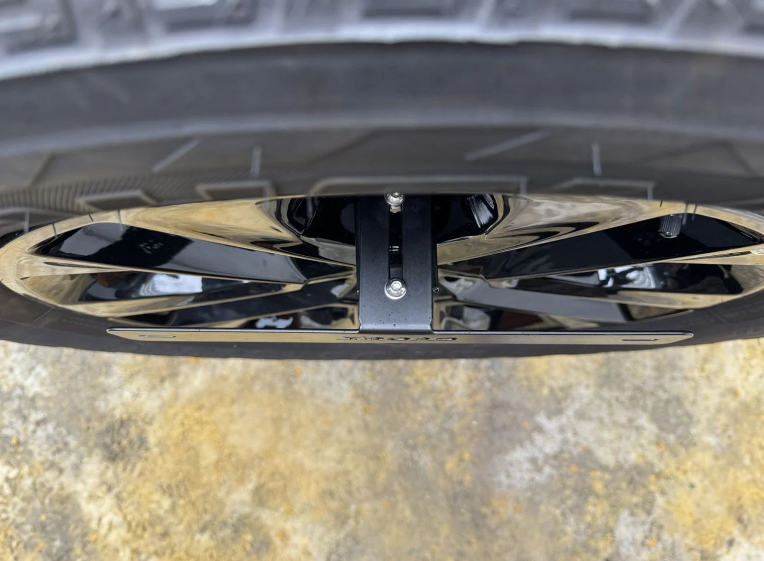 Монтаж кронштейна не вимагає свердління кузова або будь-яких інших змін в конструкції автомобіля. Він фіксується за рахунок кріплення самого запасного колеса, що робить установку швидкою та простою.
