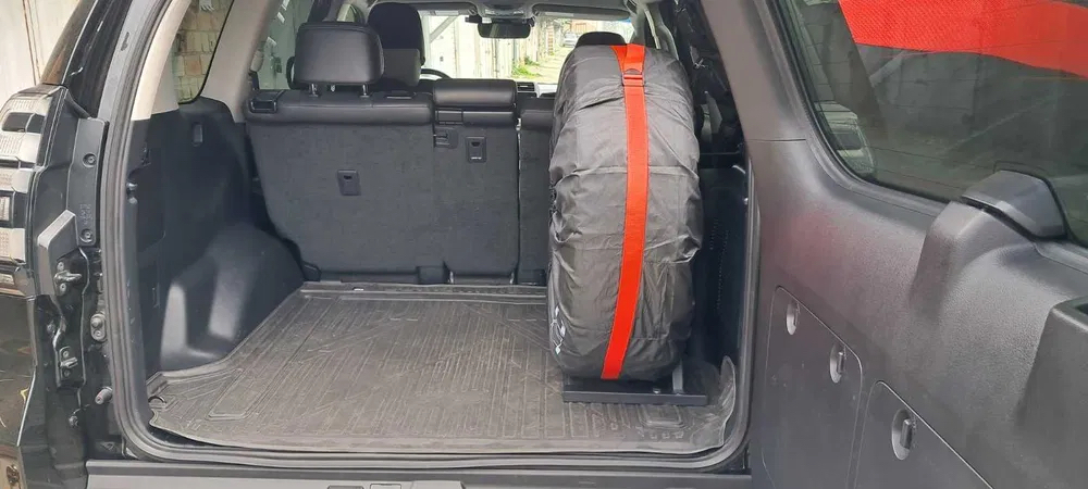 Кронштейн дозволяє легко вирішити проблему “куди подіти запаску при далеких поїздках і як зробити так, щоб колесо не займало підлогу багажника?”
