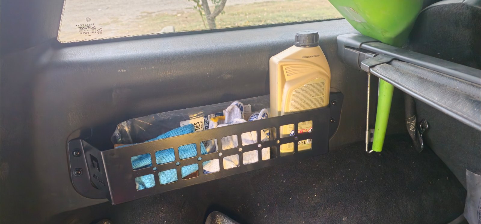 Стінки органайзера розроблені у форматі molle-панелі, що дозволяє закріпити армійські підсумки, вогнегасник, сокиру, ніж, ліхтарик тощо. Круглі отвори дозволяють кріпити гумові стропи, клепальні гайки і підходять для універсальних гумових кріплень типу QuickFist.