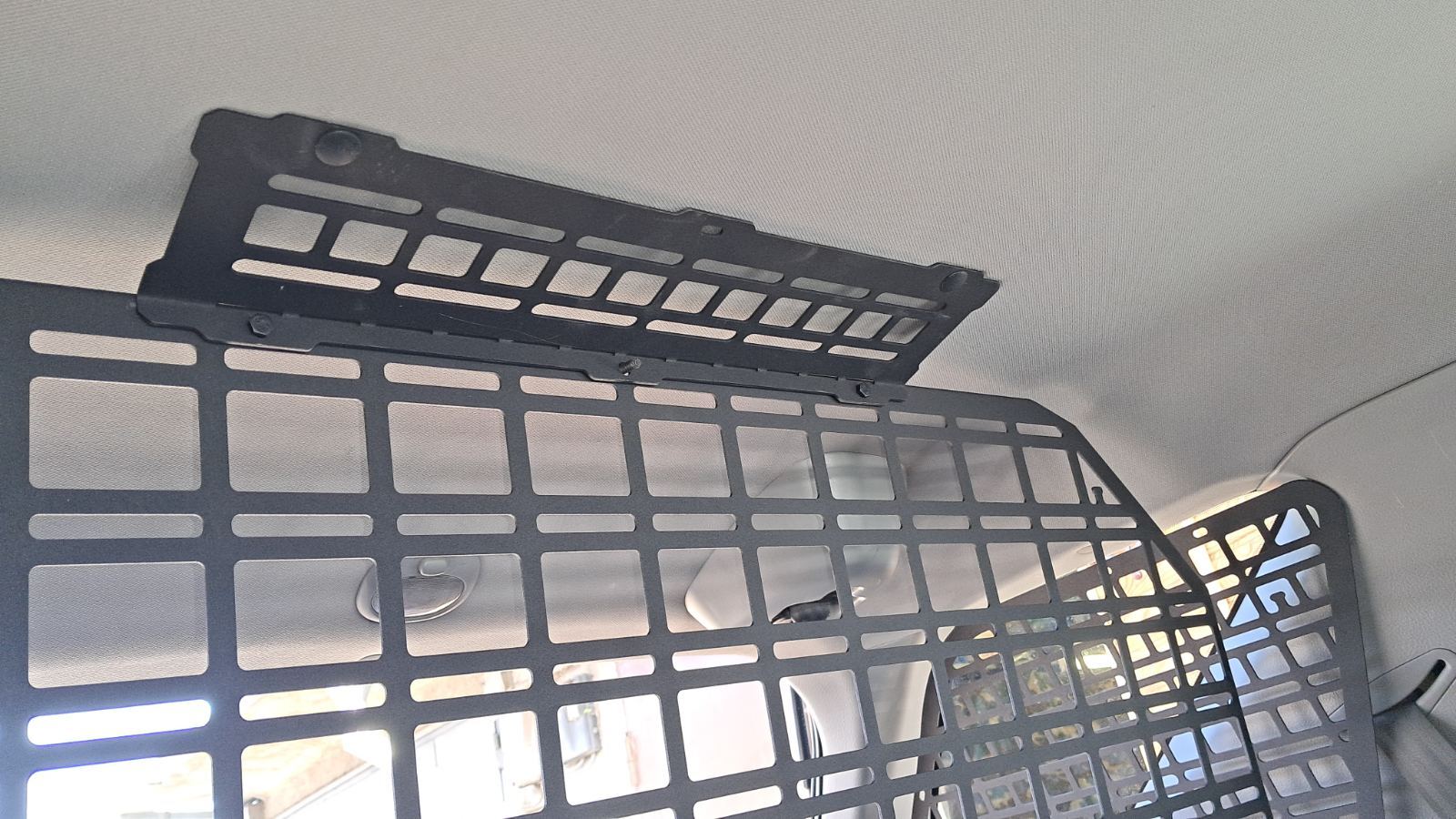Кріплення здійснюється зверху під ручки 3-го ряду, знизу за підголовники. Установка сітки-перегородки проста, швидка і не потребує свердління деталей автомобіля.