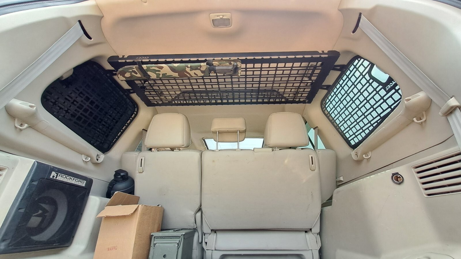 Конструкція полиці дозволяє кріпити необхідні речі до полиці не тільки зверху, а й знизу, тим самим забезпечуючи додаткове місце зберігання в багажнику. Розмір молле-вікон стандартний, що дозволяє кріпити типове армійське спорядження. Круглі отвори дозволяють кріпити гумові стропи, клепальні гайки та підходять для універсальних гумових кріплень QuickFist.