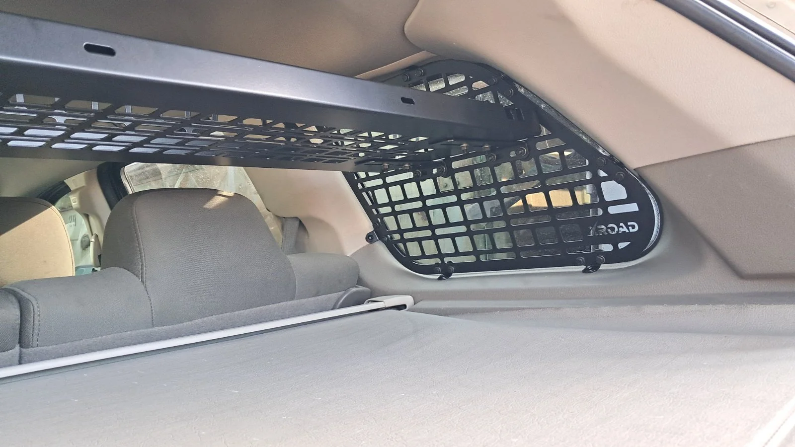Полиця кріпиться до Молле-панелі на вікна (панелі на вікна в комплект не входять, їх можна купити окремо). Для монтажу полиці не потрібно свердління деталей автомобіля, що забезпечує швидке та просте встановлення. Ви зможете встановити полицю самостійно без допомоги спеціалістів.