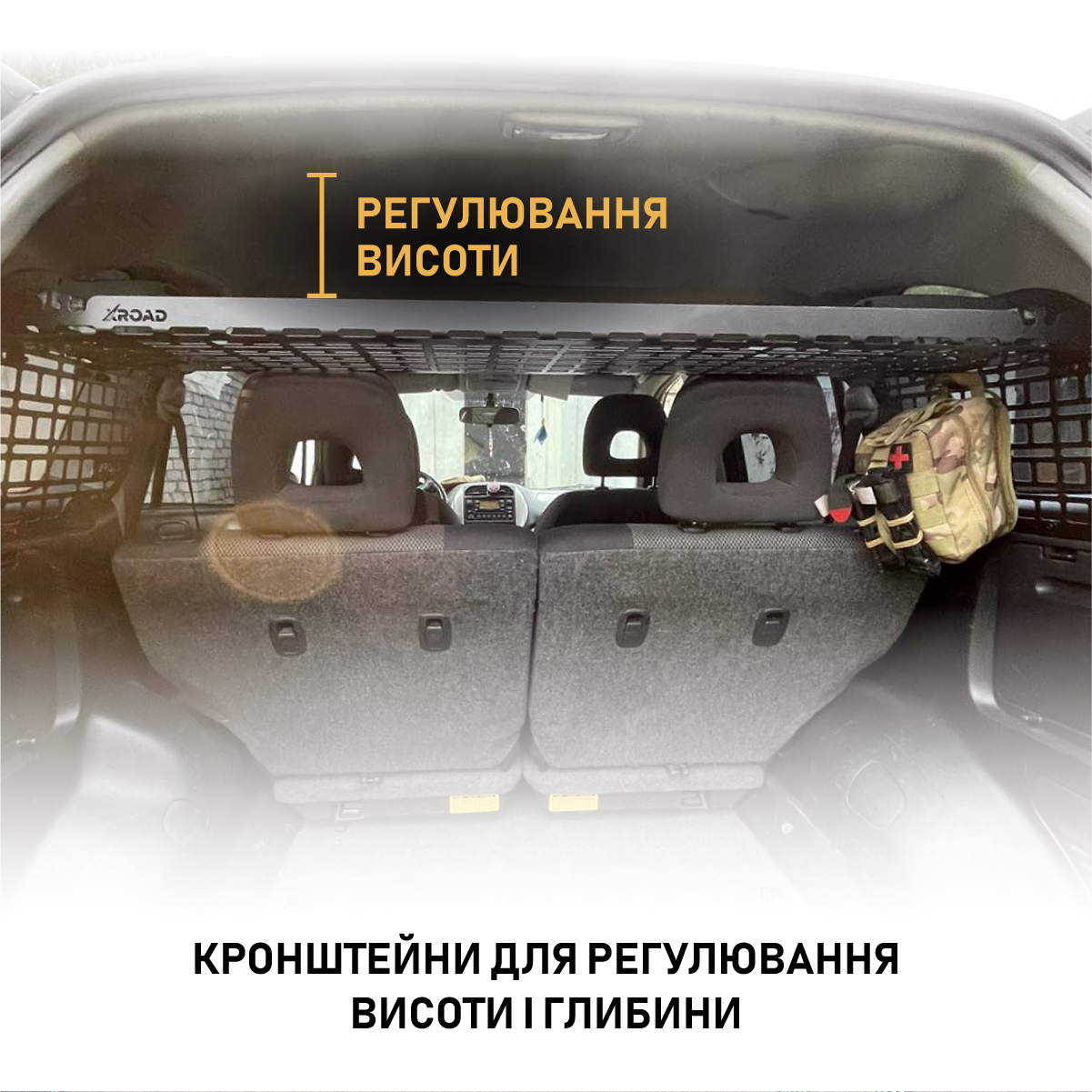 Конструкція полиці дозволяє кріпити необхідні речі до полиці не тільки зверху, а й знизу, тим самим забезпечуючи додаткове місце зберігання в багажнику. Розмір молле-вікон стандартний, що дозволяє кріпити типове армійське спорядження. Круглі отвори дозволяють кріпити гумові стропи, клепальні гайки та підходять для універсальних гумових кріплень QuickFist.