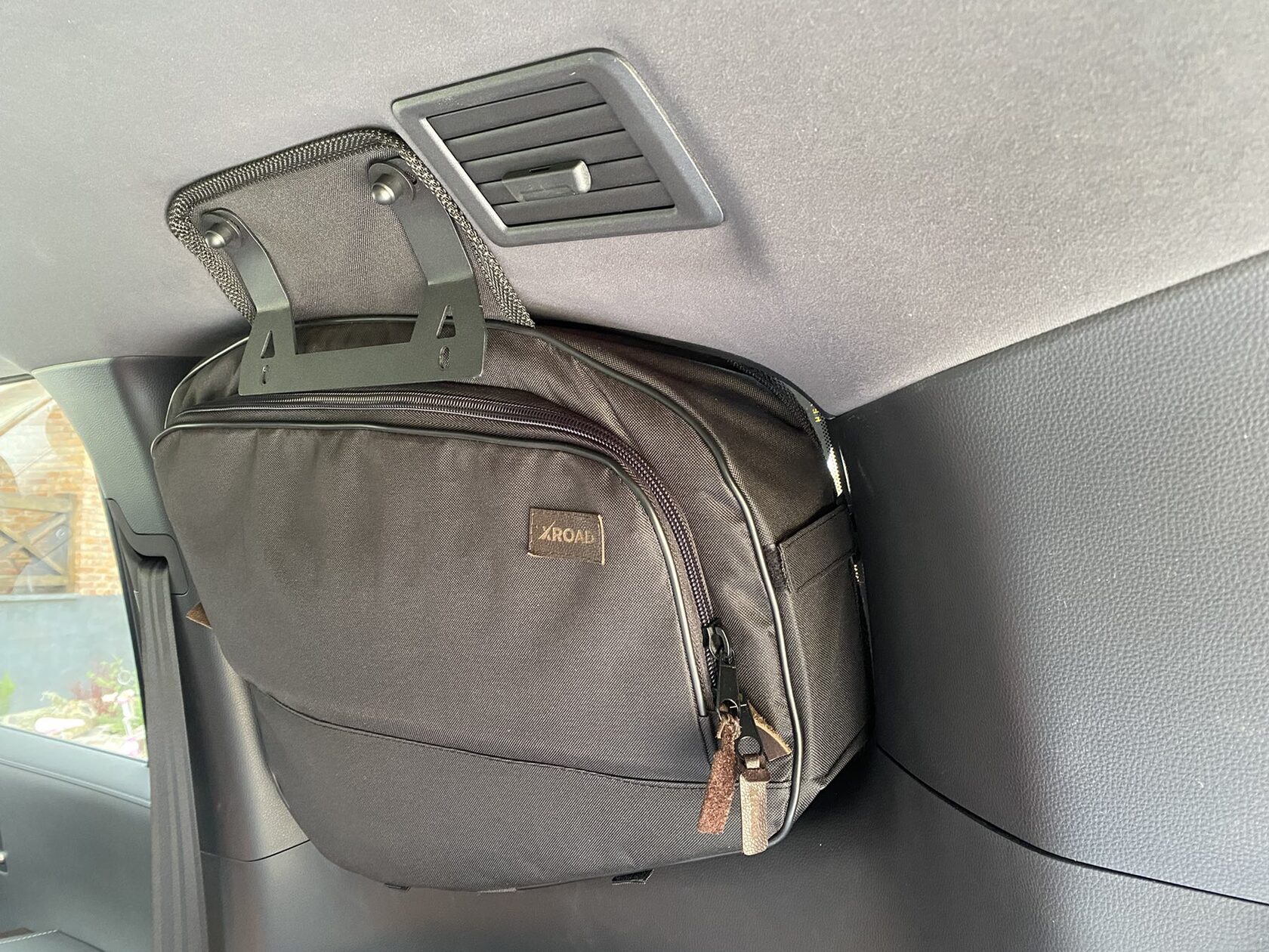 - Органайзер кріпиться швидко та без будь-яких втручань у обшивку автомобіля – зверху за кріплення для ручки та по периметру вікна гачками за пластик.