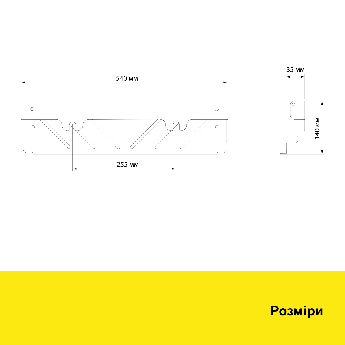 - Матеріал: холоднокатана сталь із чорним порошковим фарбуванням, товщина 2 мм.