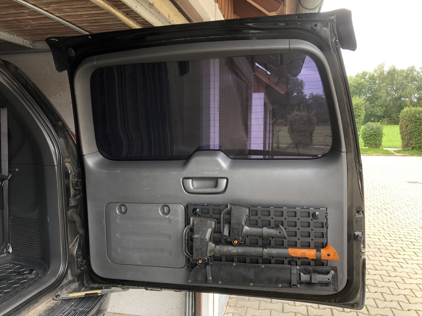 В складеному стані стіл виконаний в форматі моллє-панелі, що дозволяє розміщувати тактичне спорядження, зброю або інструменти за допомогою різних систем кріплення. Розмір молле-вікон стандартний для кріплення типового армійського спорядження. Круглі отвори дозволяють кріпити гумові стропи, клепальні гайки та підходять для універсальних гумових кріплень QuickFist.
