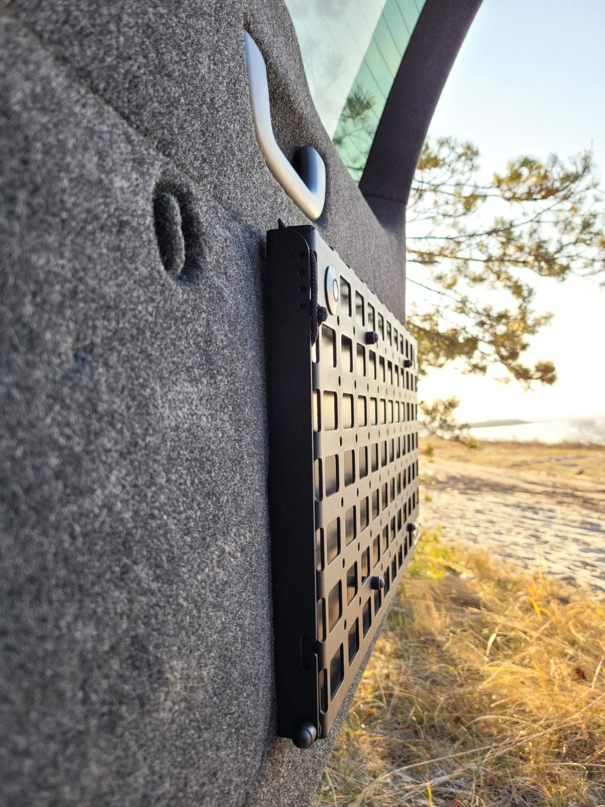 - В складеному стані стіл виконаний в форматі моллє-панелі, що дозволяє розміщувати тактичне спорядження, зброю або інструменти за допомогою різних систем кріплення.