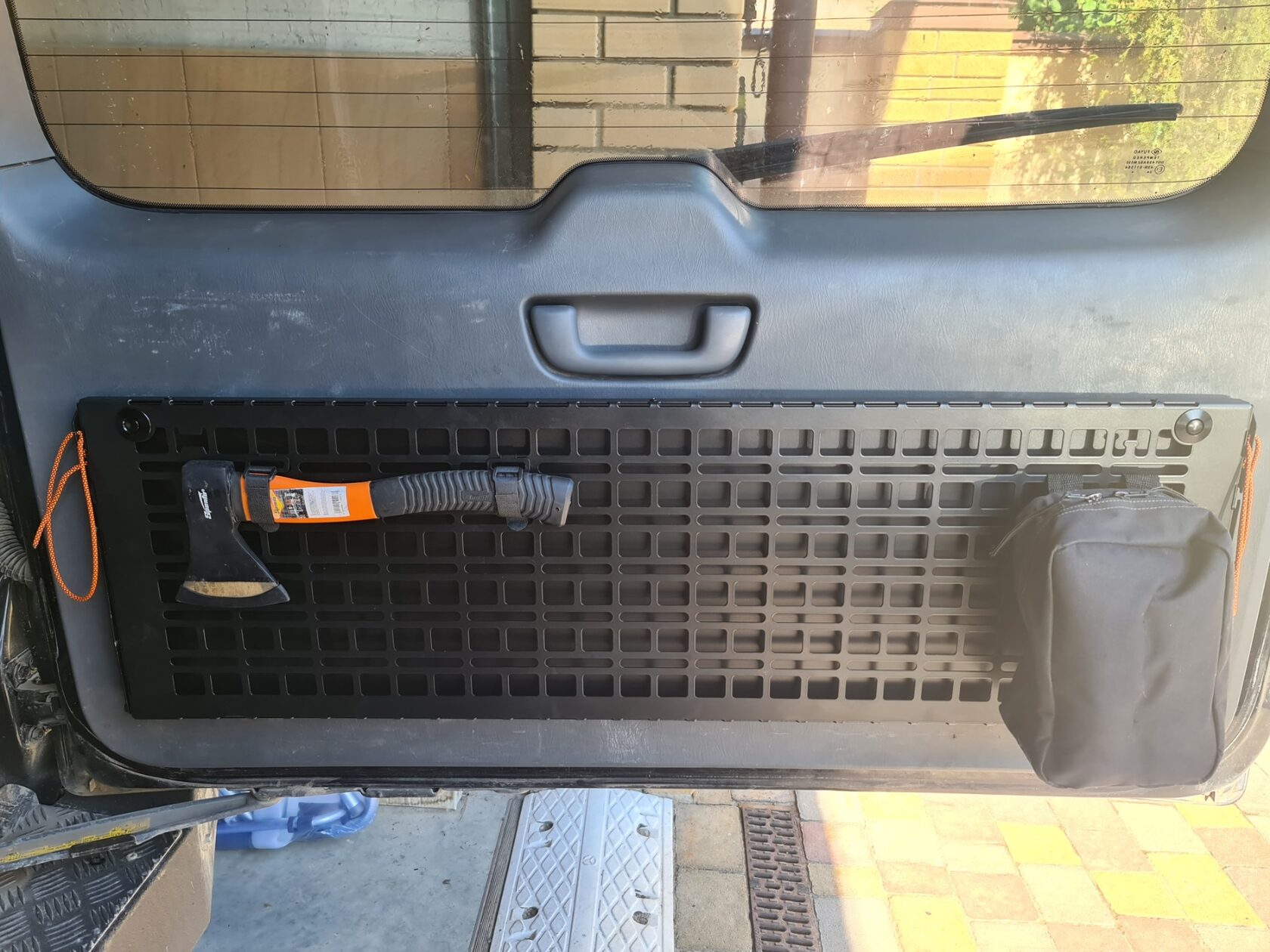 В складеному стані стіл виконаний в форматі моллє-панелі, що дозволяє розміщувати тактичне спорядження, зброю або інструменти за допомогою різних систем кріплення. Розмір молле-вікон стандартний для кріплення типового армійського спорядження. Круглі отвори дозволяють кріпити гумові стропи, клепальні гайки та підходять для універсальних гумових кріплень QuickFist.
